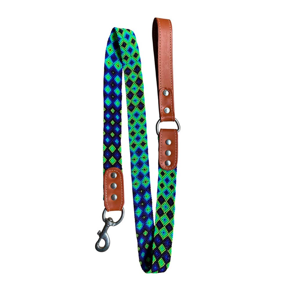 Correas artesanales, para perro, hechas 100% a mano por artesanos mexicanos. El tejido es hecho por comunidades indígenas en Chiapas y el armado por artesanos de la Ciudad de México especializados en trabajos de Marroquinería y Talabartería. Los tejidos son cuidadosamente elegidos para que tu mascota luzca una correa con la mejor calidad y diseño. El asa de la correa sobre el cual se monta el tejido es de cuero recuperado con forro y el herraje de acero.  El largo de la correa es de un metro aproximadamente, el ancho del tejido es de 4 cm. Para lavar la correa de tu mascota, con jabón neutro y un cepillo de dientes lavar únicamente la parte correspondiente al tejido y dejar secar a la sombra, tratar de no mojar el cuero. Con tu compra apoyas a generar empleos y a seguir apoyando nuestras tradiciones y artesanías mexicanas.